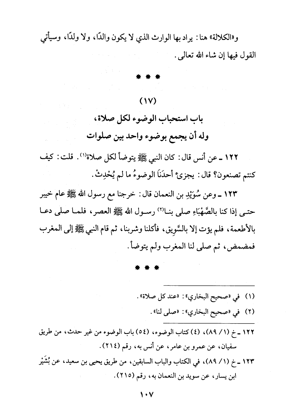 (17) باب استحباب الوضوء لكل صلاة، وله أن يجمع بوضوء واحد بين صلوات
