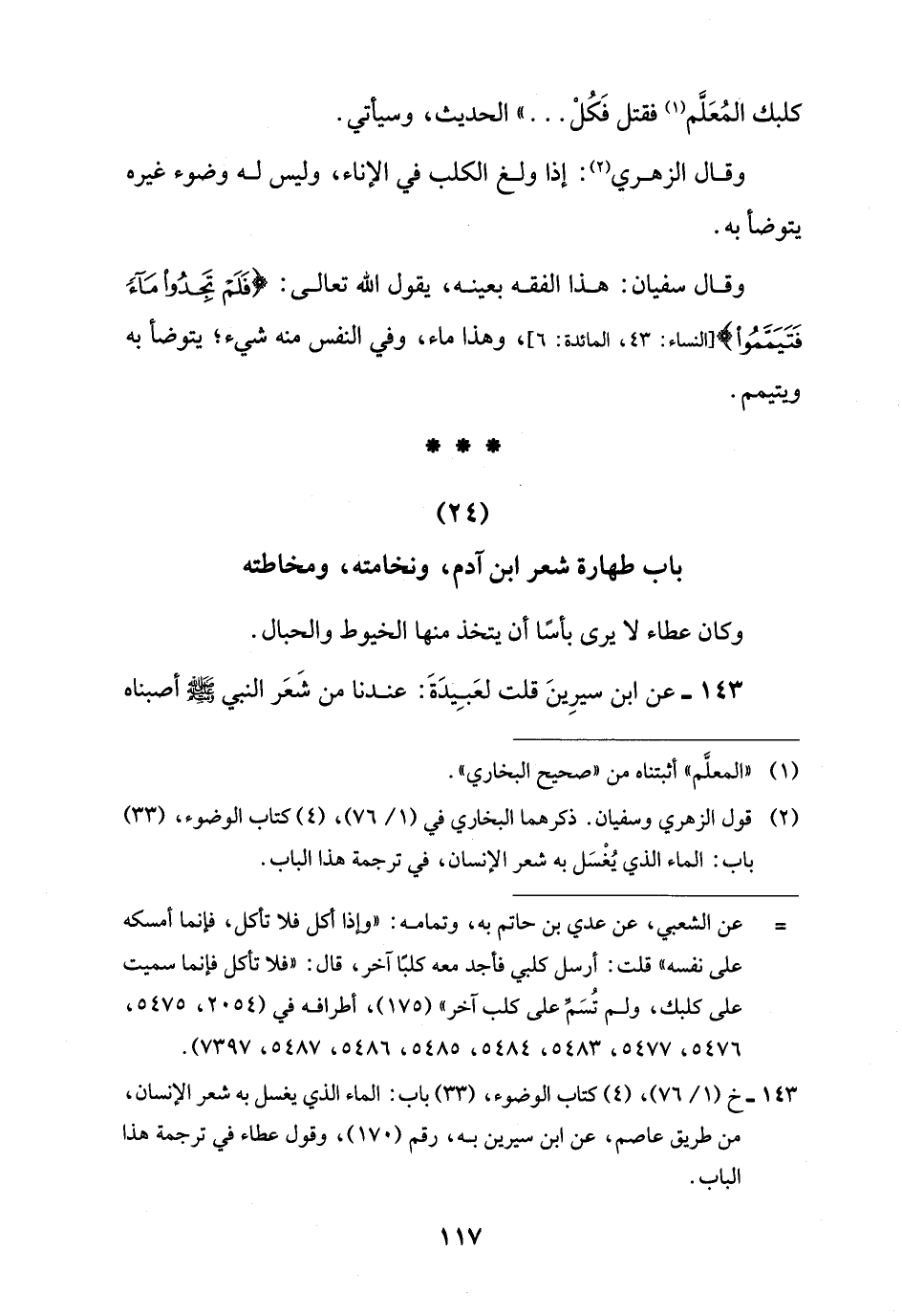 (¬2) قول الزهري وسفيان. ذكرهما البخاري في (1/ 76)، (4) كتاب الوضوء، (33) باب: الماء الذي يُغْسَل به شعر الإنسان، في ترجمة هذا الباب.
