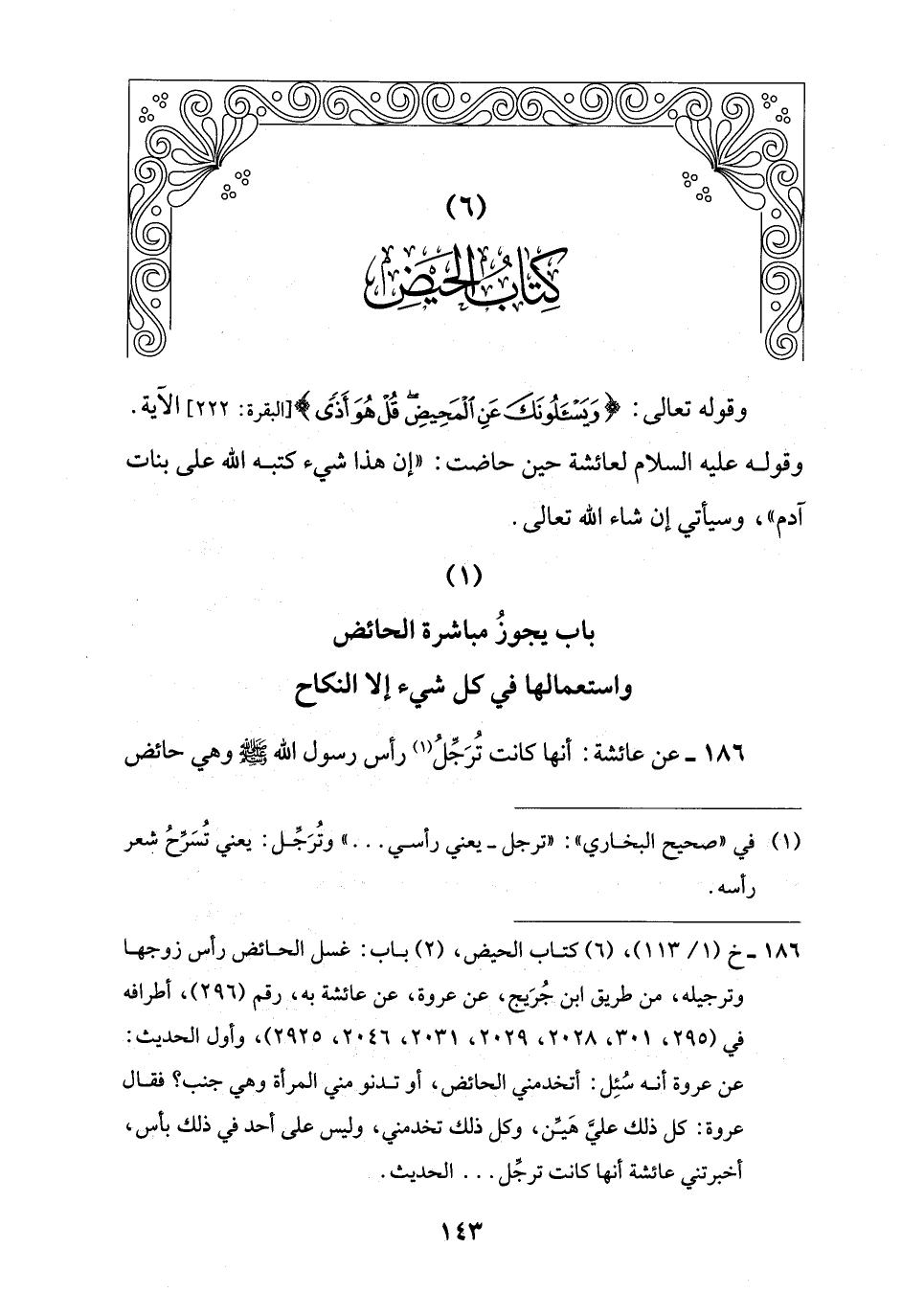 (1) باب يجوزُ مباشرة الحائض واستعمالها في كل شيء إلا النكاح