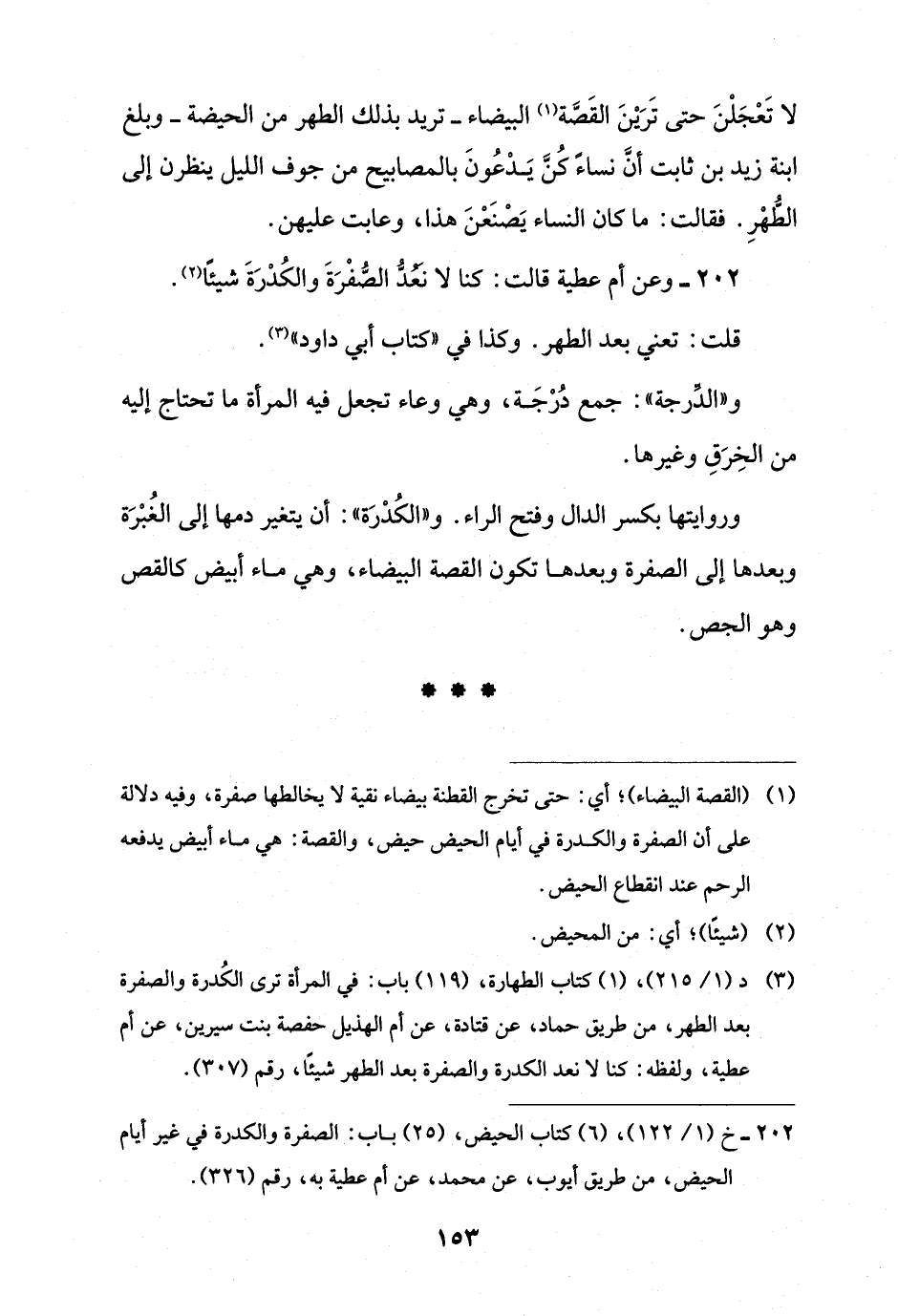 202 - وعن أم عطية قالت: كنا لا نَعُدُّ الصُّفْرَةَ والكُدْرَةَ شيئًا (¬2).