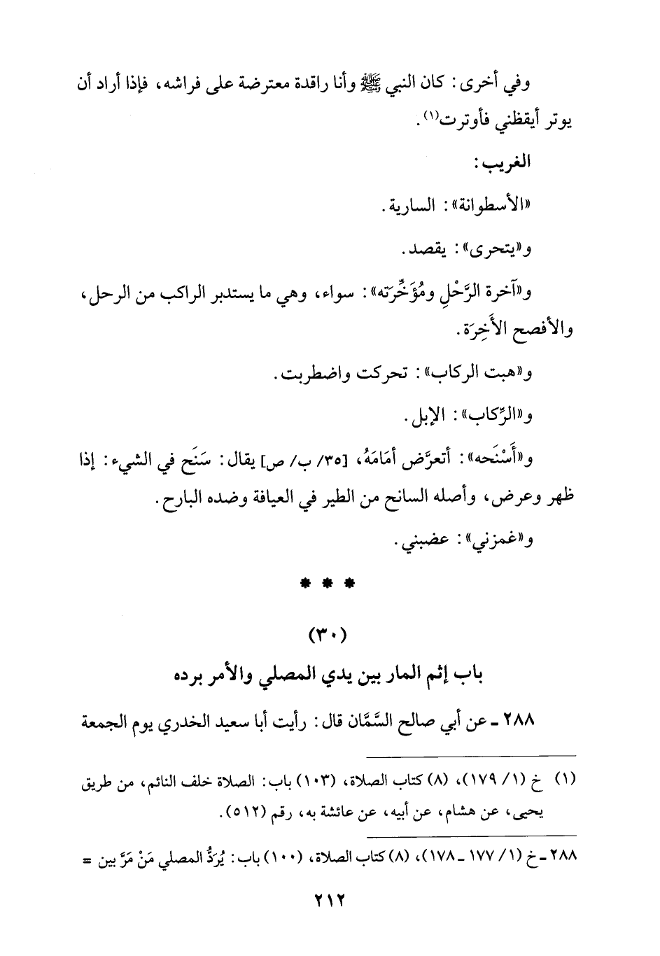 288 - خ (1/ 177 - 178)، (8) كتاب الصلاة، (100) باب: يُرَدُّ المصلي مَنْ مَرَّ بين =