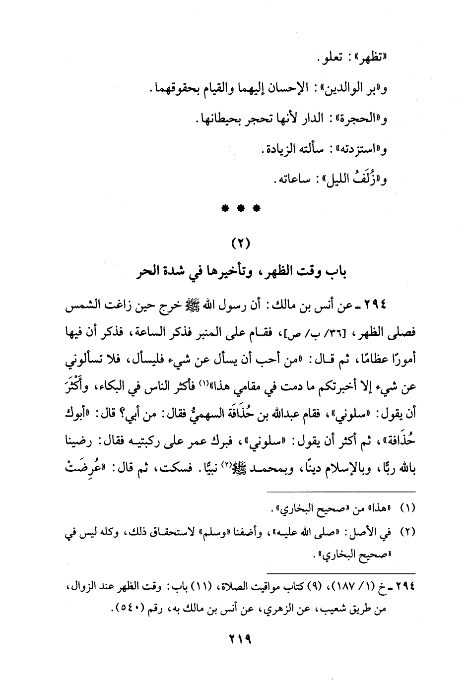 (2) باب وقت الظهر، وتأخيرها في شدة الحر