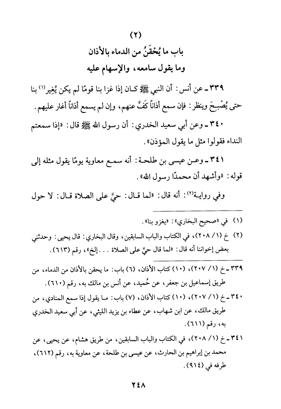 (2) باب ما يُحْقَنُ من الدماء بالأذان وما يقول سامعه، والإسهام عليه