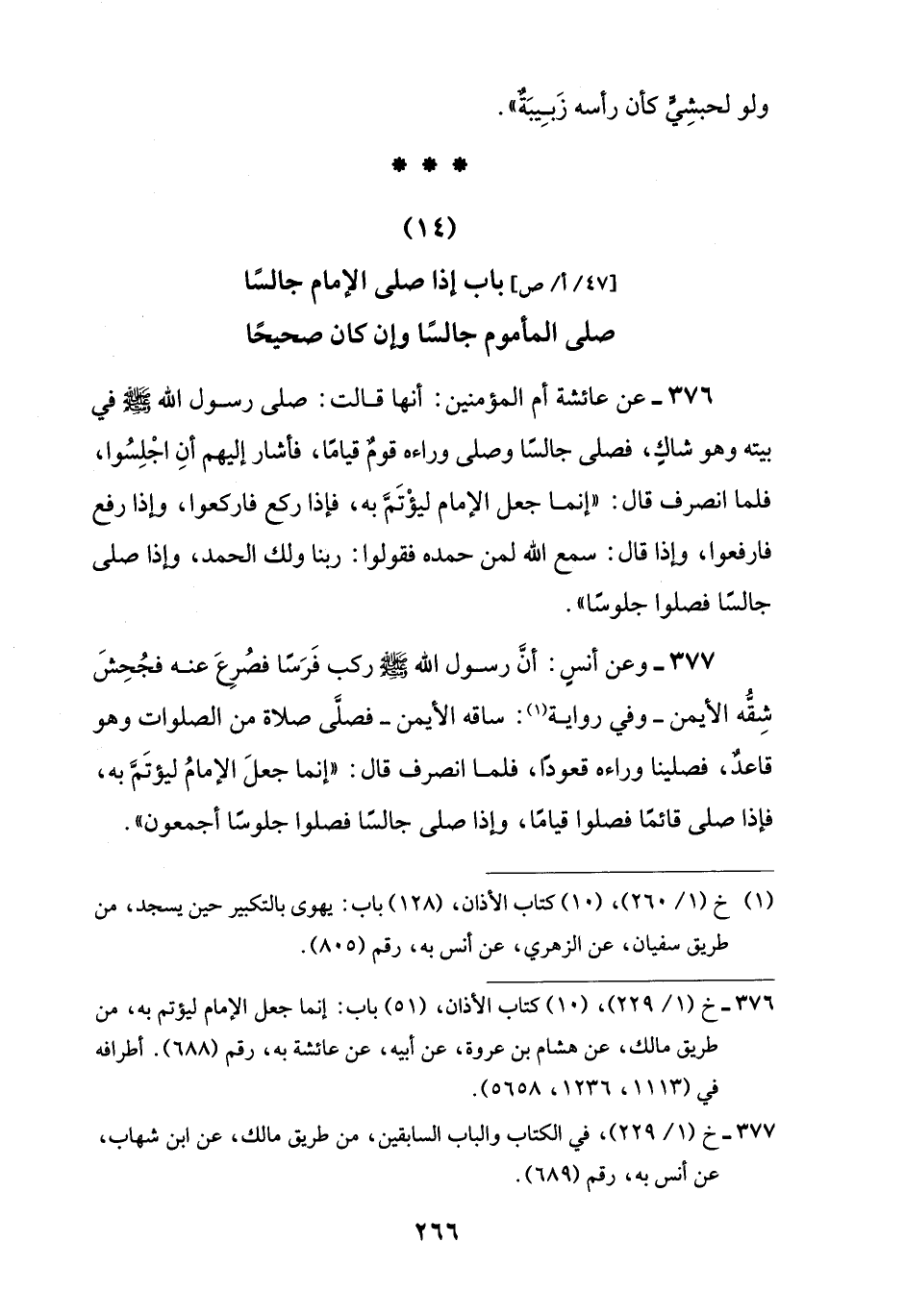 (14) باب إذا صلى الإمام جالسًا صلى المأموم جالسًا وإن كان صحيحًا