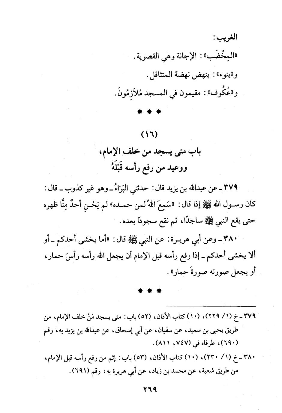 (16) باب متى يسجد من خلف الإمام، ووعيد من رفع رأسه قَبْلَهُ
