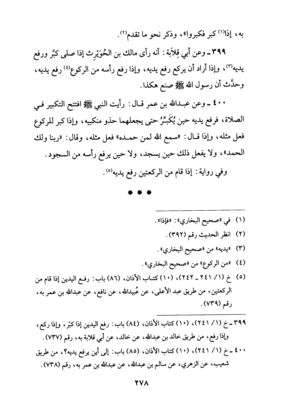 (¬5) خ (1/ 241 - 242)، (10) كتاب الأذان، (86) باب: رفع اليدين إذا قام من الركعتين، من طريق عبد الأعلى، عن عُبيد اللَّه، عن نافع، عن عبد اللَّه بن عمر به، رقم (739).