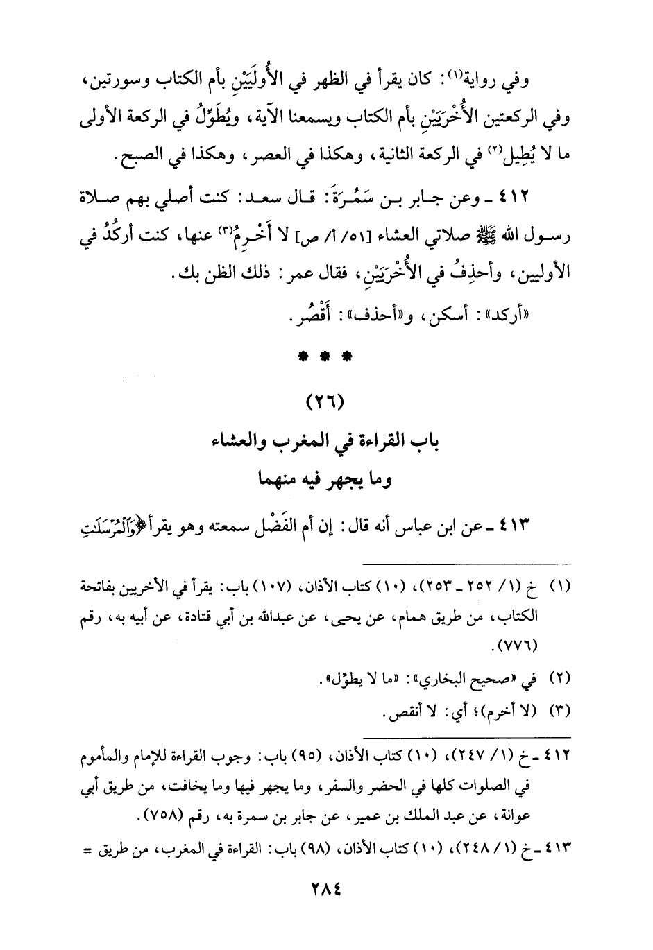 (26) باب القراءة في المغرب والعشاء وما يجهر فيه منهما