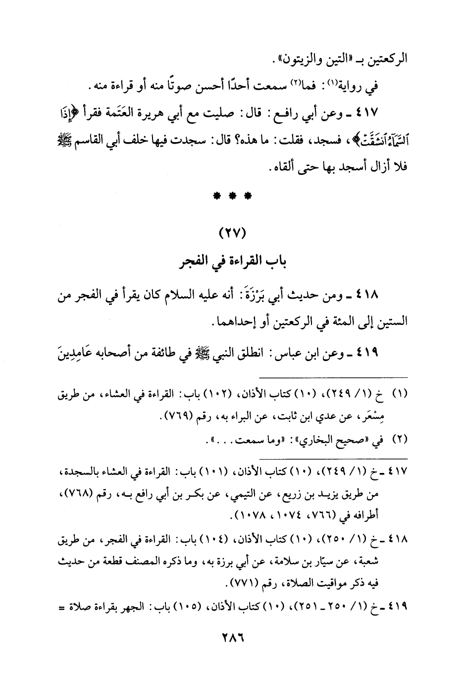 419 - خ (1/ 250 - 251)، (10) كتاب الأذان، (105) باب: الجهر بقراءة صلاة =
