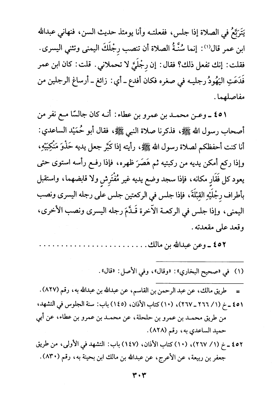 451 - خ (1/ 266 - 267)، (10) كتاب الأذان، (145) باب: سنة الجلوس في التشهد، من طريق محمد بن عمرو بن حلحلة، عن محمد بن عمرو بن عطاء، عن أبي حميد الساعدي به، رقم (828).