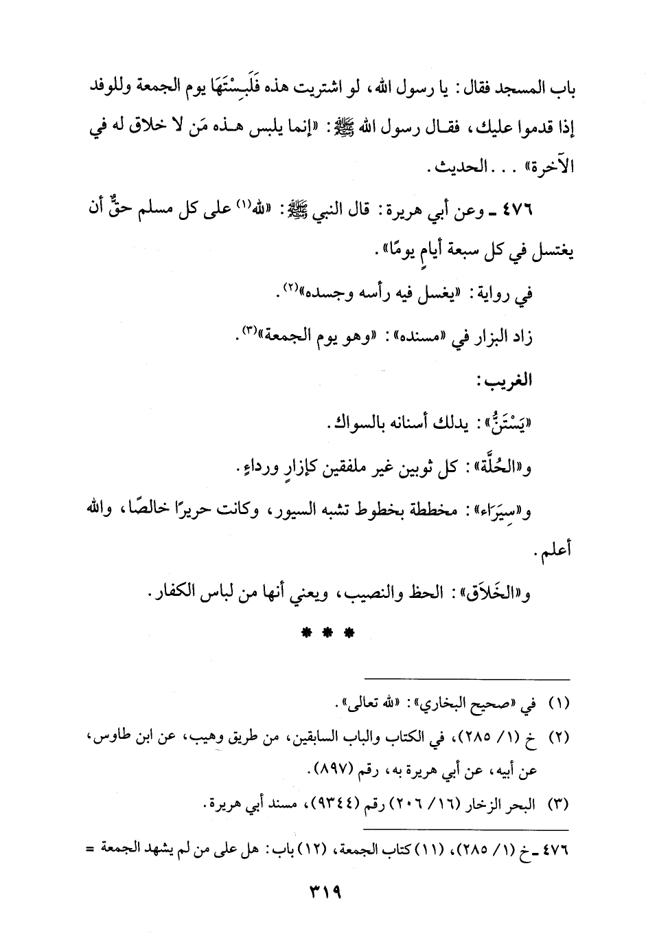 476 - وعن أبي هريرة: قال النبي -صلى اللَّه عليه وسلم-: "للَّه (¬1) على كل مسلم حقٌّ أن يغتسل في كل سبعة أيامٍ يومًا".