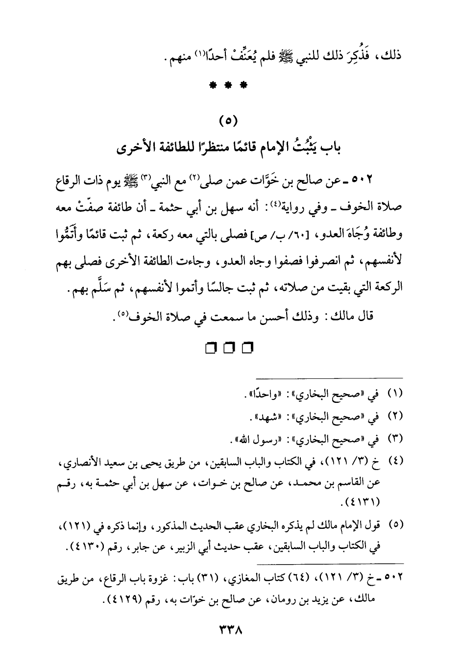 (5) باب يَثْبُتُ الإمام قائمًا منتظرًا للطائفة الأخرى