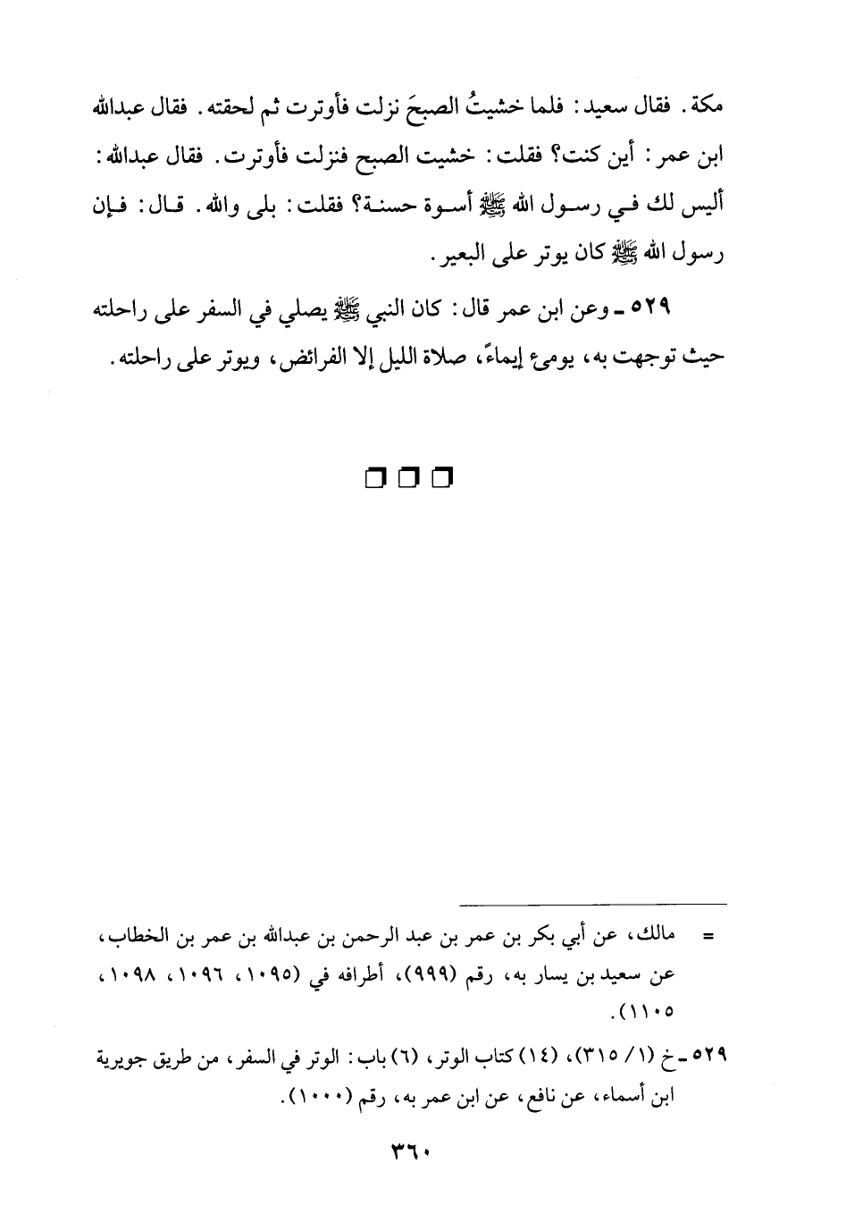 529 - خ (1/ 315)، (14) كتاب الوتر، (6) باب: الوتر في السفر، من طريق جويرية ابن أسماء، عن نافع، عن ابن عمر به، رقم (1000).