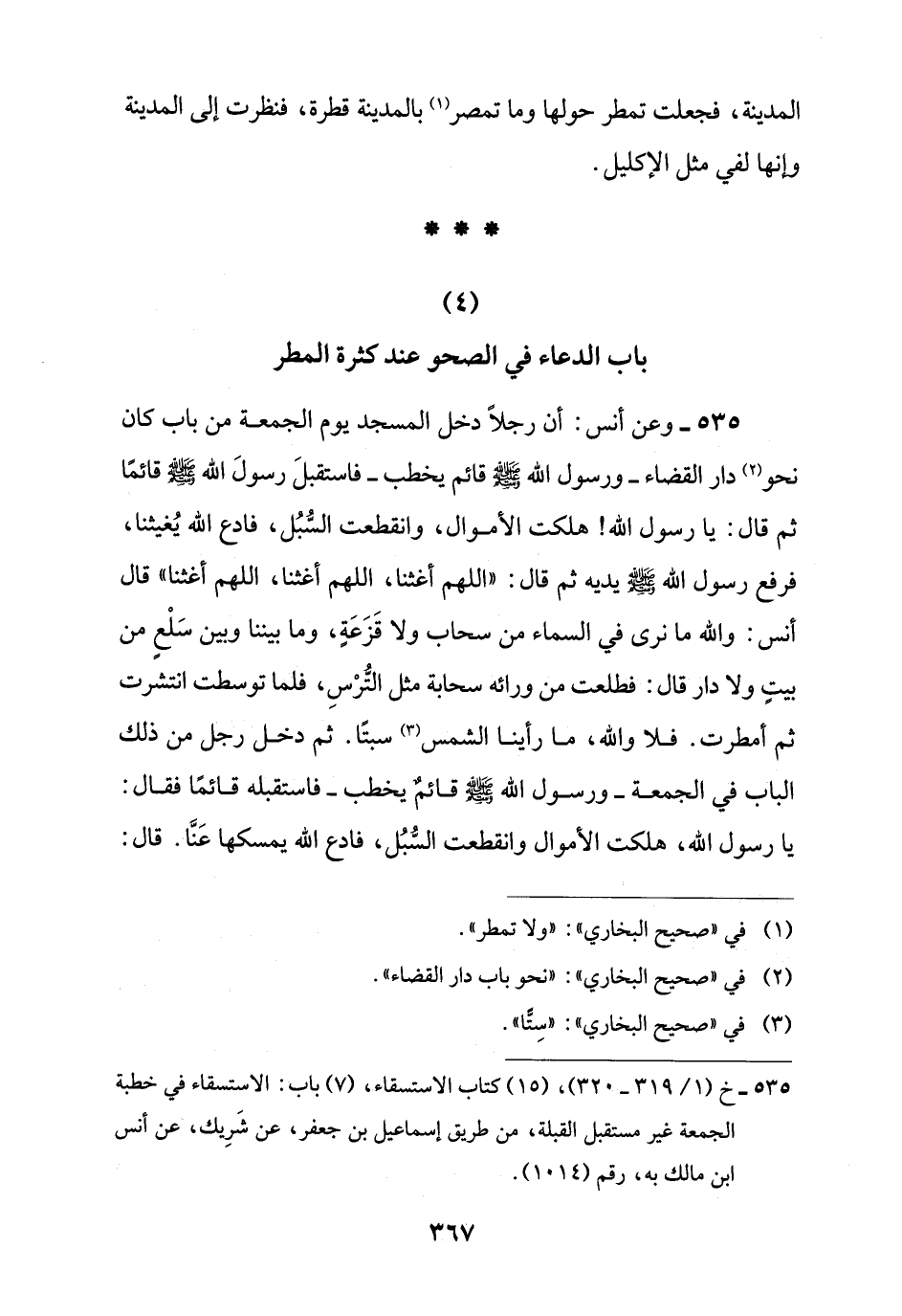 (4) باب الدعاء في الصحو عند كثرة المطر