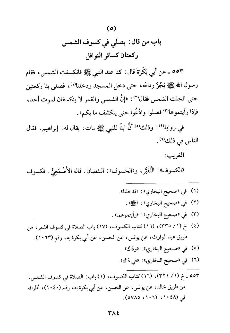 (5) باب من قال: يصلي في كسوف الشمس ركعتان كسائر النوافل