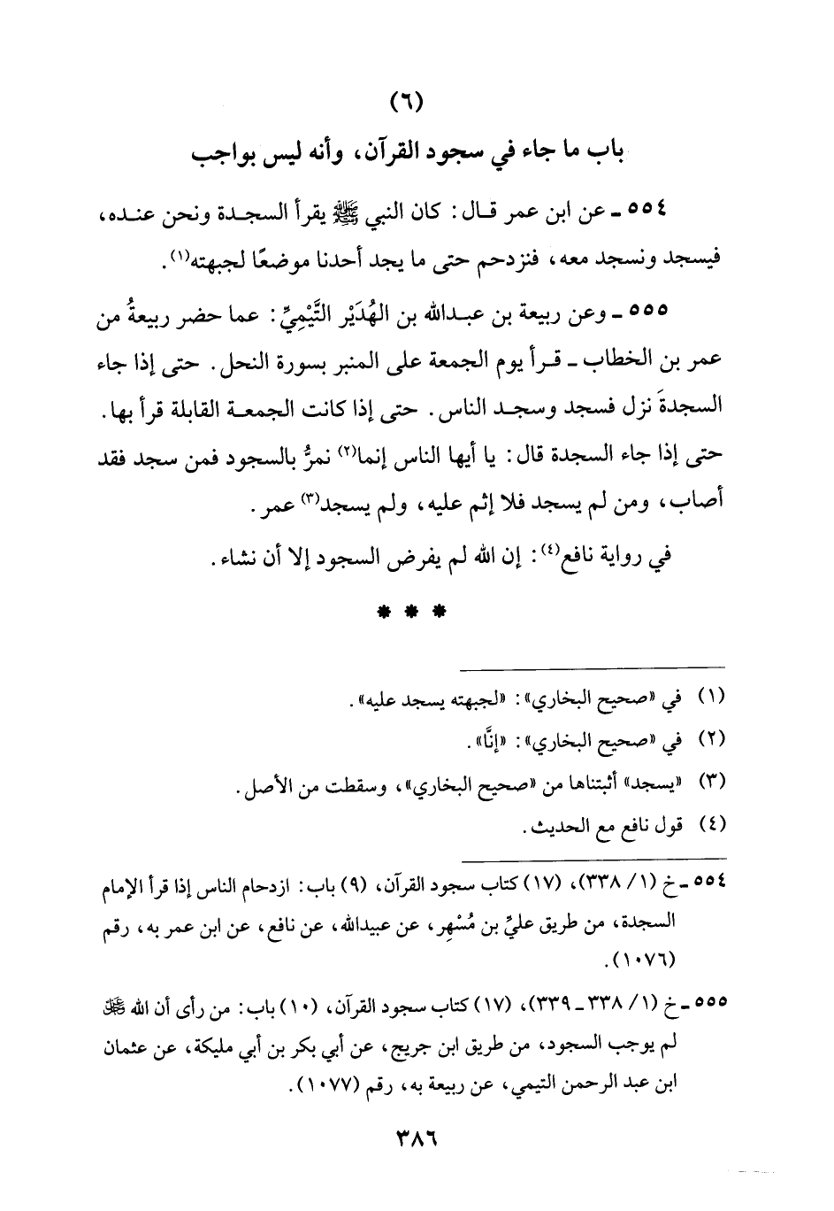 (6) باب ما جاء في سجود القرآن، وأنه ليس بواجب