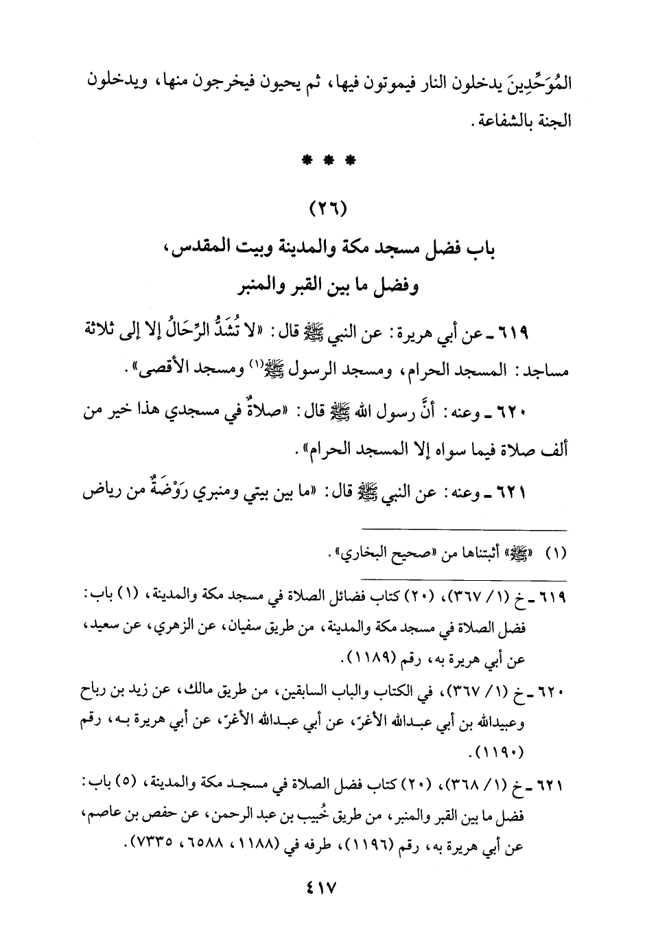 (26) باب فضل مسجد مكة والمدينة وبيت المقدس، وفضل ما بين القبر والمنبر