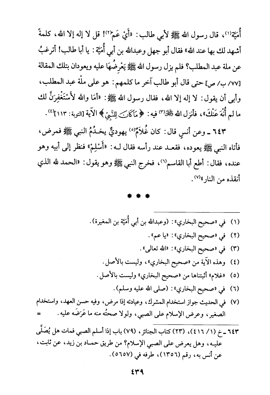 643 - خ (1/ 416)، (23) كتاب الجنائز، (79) باب إذا أسلم الصبي فمات هل يُصَلَّى عليه، وهل يعرض على الصبي الإسلام؛ من طريق حماد بن زيد، عن ثابت، عن أنس به، رقم (1356)، طرفه في (5657).