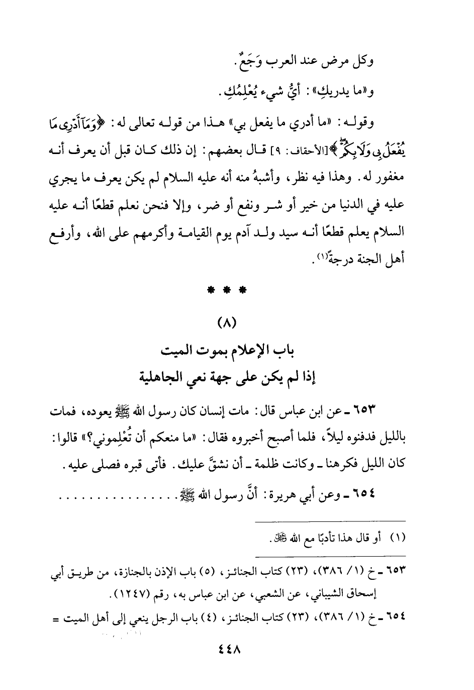 (8) باب الإعلام بموت الميت إذا لم يكن على جهة نعي الجاهلية