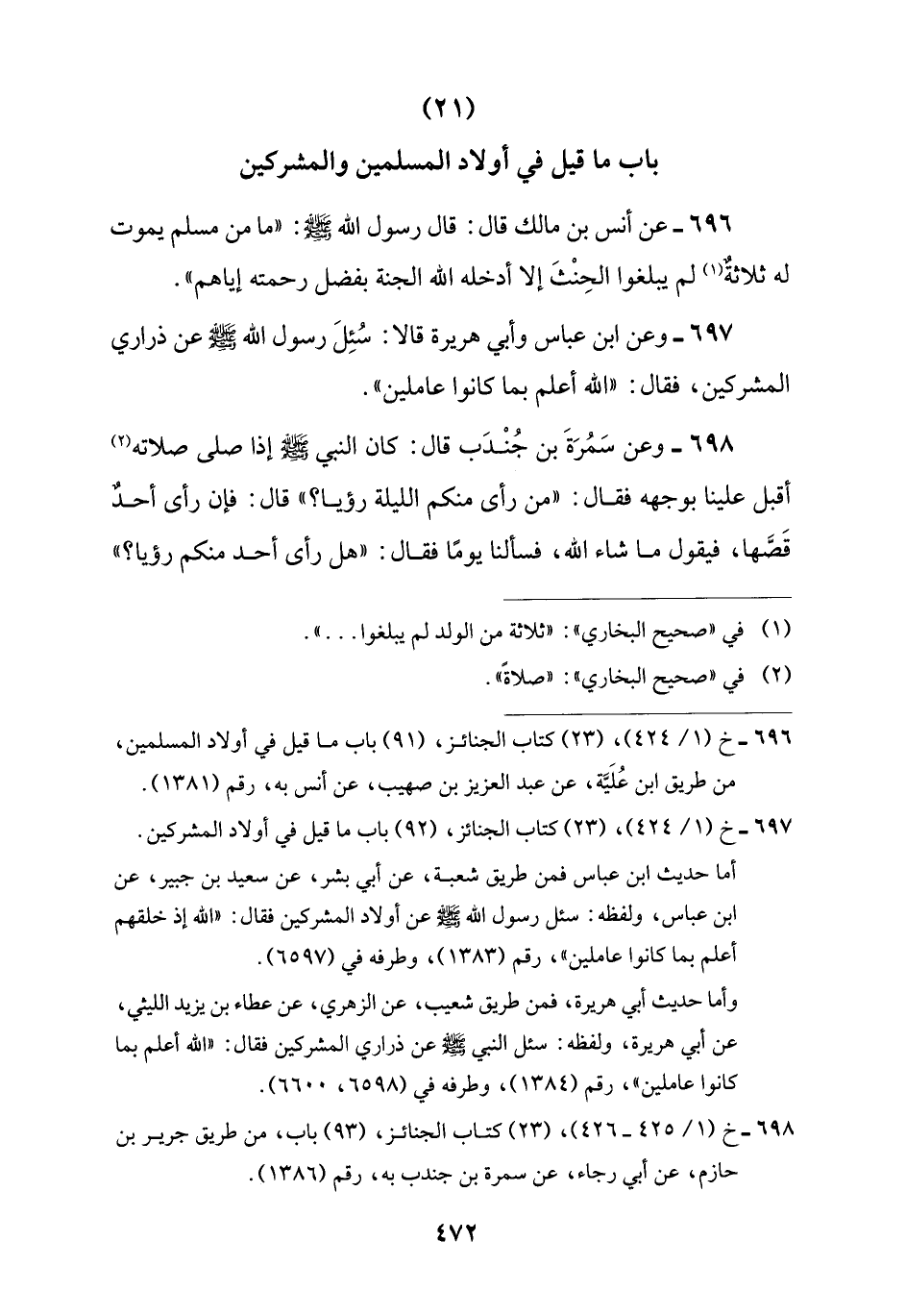 (21) باب ما قيل في أولاد المسلمين والمشركين
