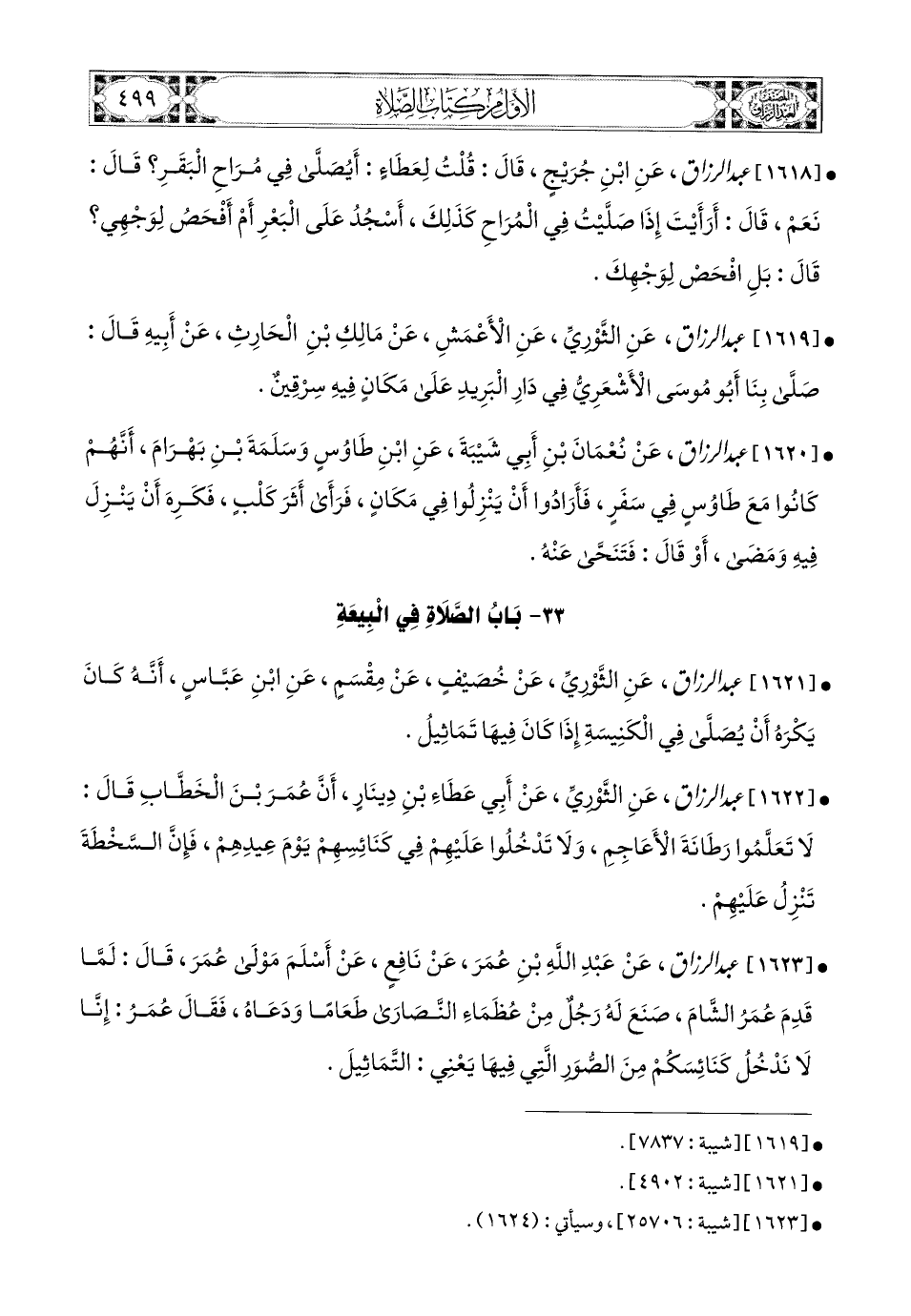 1621- عبد الرزاق، عَنِ الثَّورِيِّ، عَن خُصَيْفٍ، عَن مِقْسَمٍ، عَنِ ابْنِ عَبَّاسٍ، أَنَّهُ كَانَ يَكْرَهُ أَنْ يُصَلَّى فِي الْكَنِيسَةِ إِذَا كَانَ فِيهَا تَمَاثِيلُ.