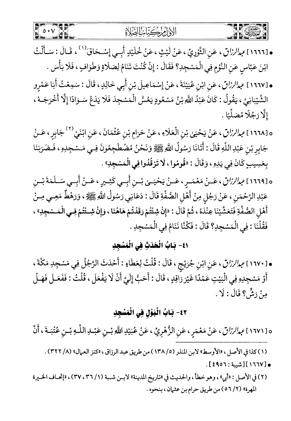 1667- عبد الرزاق، عَنِ ابْنِ عُيَيْنَةَ، عَن إِسْمَاعِيلَ بْنِ أَبِي خَالِدٍ، قَالَ: سَمِعْتُ أَبَا عَمْرٍو الشَّيْبَانِيَّ يَقُولُ: كَانَ عَبدُ اللهِ بن مَسْعُودٍ يَعُسُّ المَسْجِدَ، فَلاَ يَدَعُ سَوَادًا إِلاَّ أَخْرَجَهُ، إِلاَّ رَجُلاً مُصَلِّيًا.