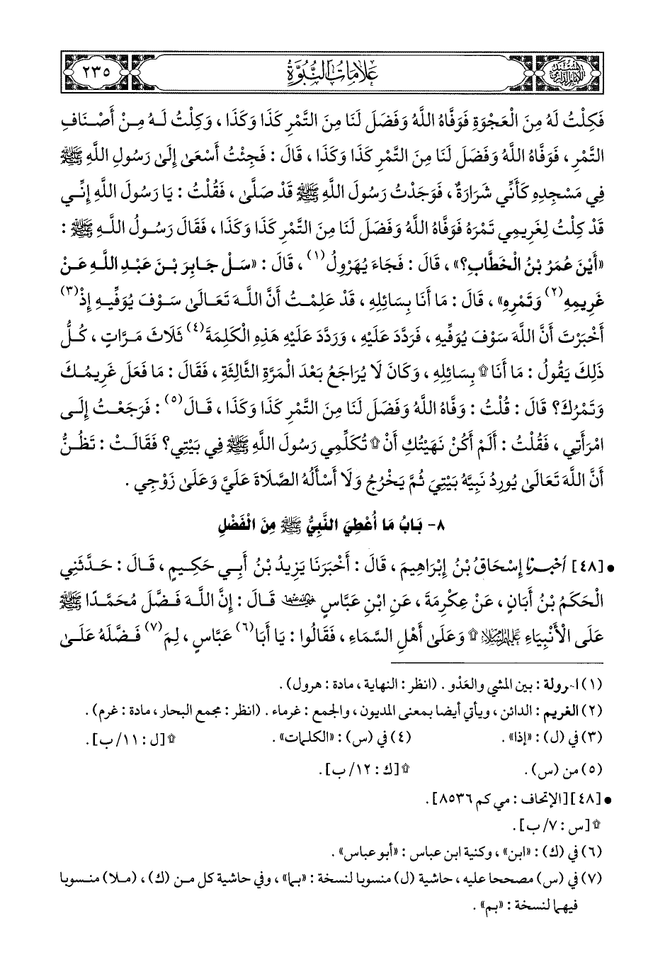 8- باب مَا أُعْطِيَ النَّبِيُّ صَلى الله عَليهِ وسَلم مِنَ الْفَضْلِ.