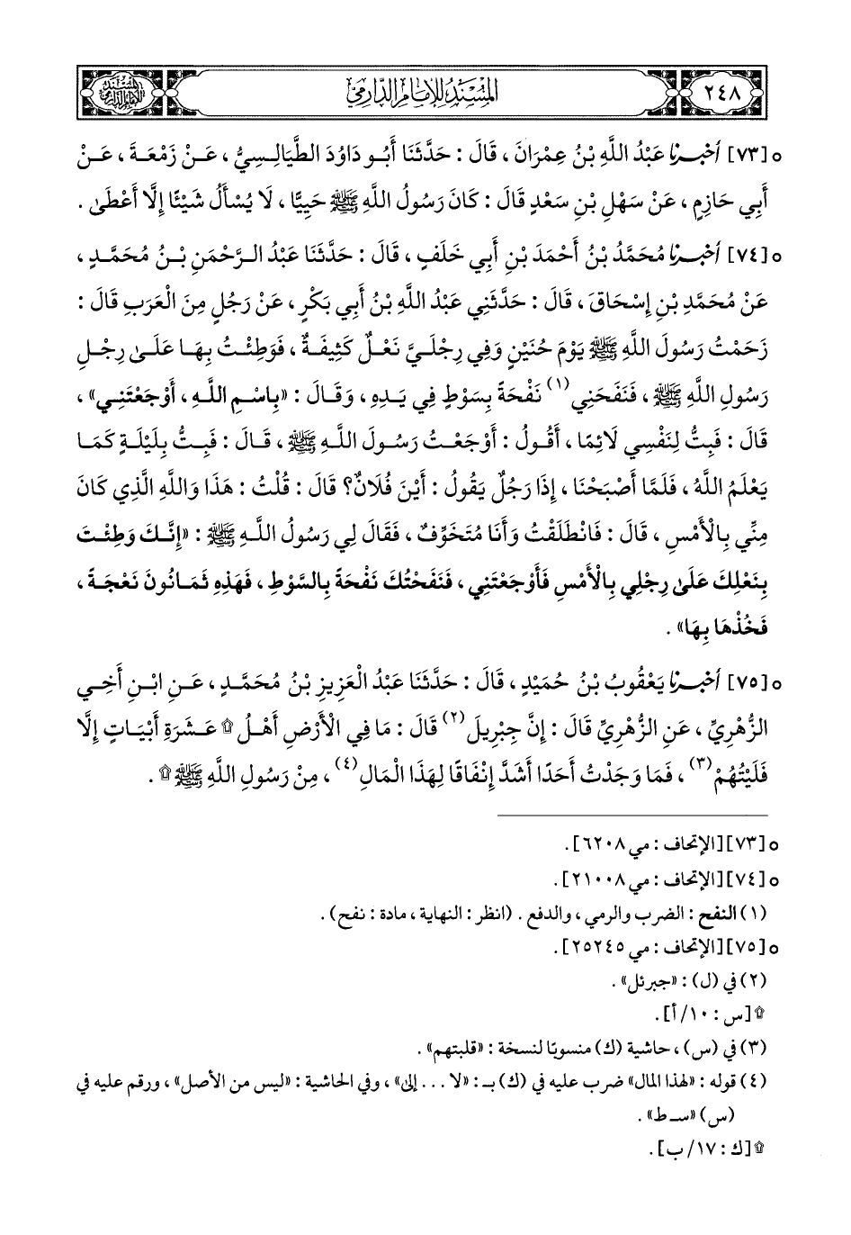 73- أَخبَرَنا عَبْدُ اللهِ بْنُ عِمْرَانَ, قَالَ: حَدَّثَنَا أَبُو دَاوُدَ الطَّيَالِسِيُّ, عَنْ زَمْعَةَ, عَنْ أَبِي حَازِمٍ, عَنْ سَهْلِ بْنِ سَعْدٍ, قَالَ: كَانَ رَسُولُ اللهِ صَلى الله عَليهِ وسَلم حَيِيًّا, لاَ يُسْأَلُ شَيْئًا إِلاَّ أَعْطَى.