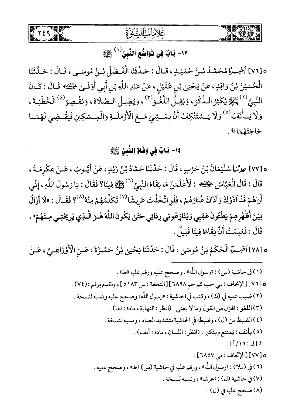 76- أَخبَرَنا مُحَمَّدُ بْنُ حُمَيْدٍ, قَالَ: حَدَّثَنَا الْفَضْلُ بْنُ مُوسَى, قَالَ: حَدَّثَنَا الْحُسَيْنُ بْنُ وَاقِدٍ, عَنْ يَحْيَى بْنِ عُقَيْلٍ, عَنْ عَبْدِ اللهِ بْنِ أَبِي أَوْفَى رَضِيَ اللهُ عَنْهُ, قَالَ: كَانَ النَّبِيُّ صَلى الله عَليهِ وسَلم يُكْثِرُ الذِّكْرَ, وَيُقِلُّ اللَّغْوَ, وَيُطِيلُ الصَّلاَةَ, وَيُقْصِرُ الْخُطْبَةَ, وَلاَ يَأْنَفُ, وَلاَ يَسْتَنْكِفُ أَنْ يَمْشِيَ مَعَ الأَرْمَلَةِ وَالْمِسْكِينِ, فَيَقْضِيَ لَهُمَا حَاجَتَهُمَا.