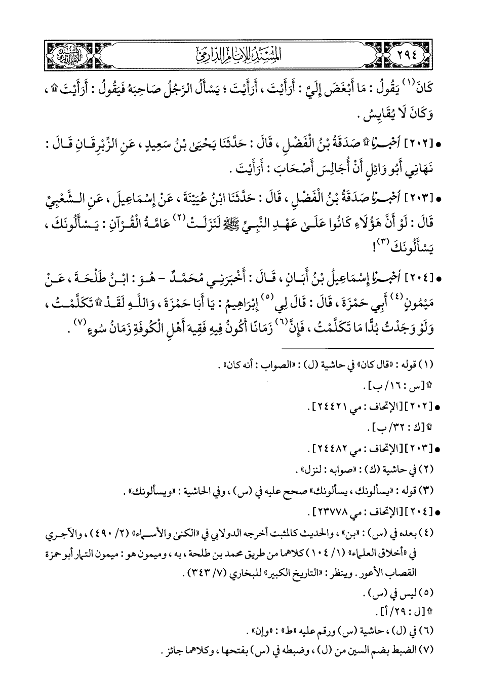 202- أَخبَرَنا صَدَقَةُ بْنُ الْفَضْلِ, قَالَ: حَدَّثَنَا يَحْيَى بْنُ سَعِيدٍ, عَنِ الزِّبْرِقَانِ, قَالَ: نَهَانِي أَبُو وَائِلٍ أَنْ أُجَالِسَ أَصْحَابَ أَرَأَيْتَ.