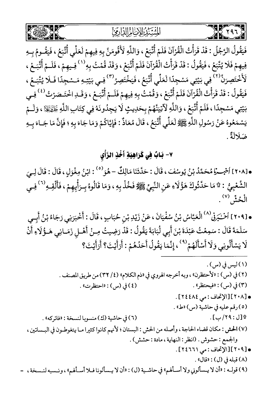 7- بَابٌ: فِي كَرَاهِيَة أَخْذِ الرَّأْيِ.