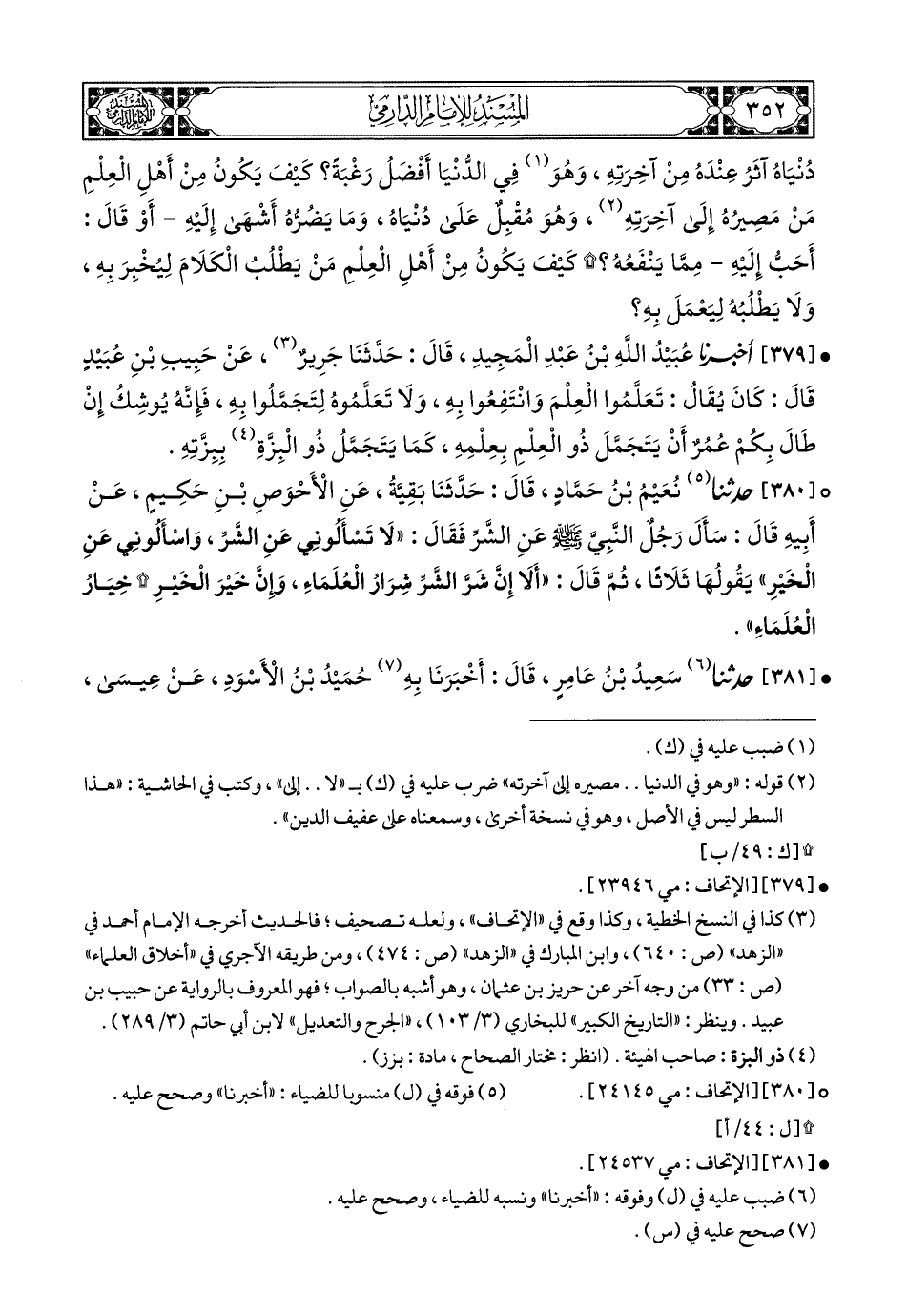 380- حَدَّثَنَا نُعَيْمُ بْنُ حَمَّادٍ, قَالَ: حَدَّثَنَا بَقِيَّةُ, عَنِ الأَحْوَصِ بْنِ حَكِيمٍ, عَنْ أَبِيهِ, قَالَ: سَأَلَ رَجُلٌ النَّبِيَّ صَلى الله عَليهِ وسَلم عَنِ الشَّرِّ, فَقَالَ: لاَ تَسْأَلُونِي عَنِ الشَّرِّ, وَسَلُونِي عَنِ الْخَيْرِ, يَقُولُهَا ثَلاَثًا, ثُمَّ قَالَ: أَلاَ إِنَّ شَرَّ الشَّرِّ شِرَارُ الْعُلَمَاءِ, وَإِنَّ خَيْرَ الْخَيْرِ خِيَارُ الْعُلَمَاءِ.