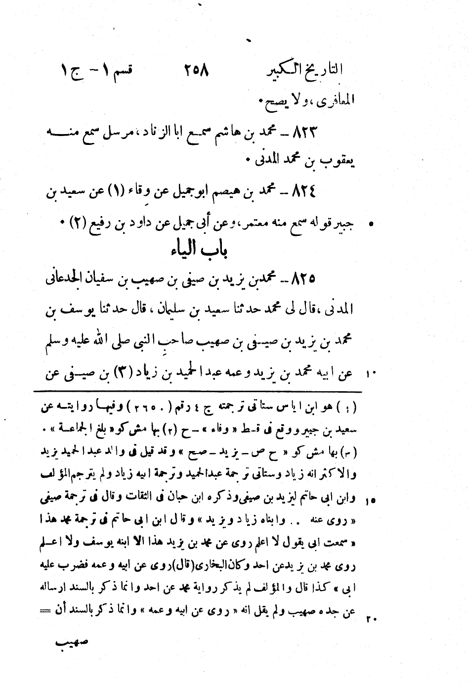 825 - مُحَمَّد بْن يزيد بْن صيفِي بْن صهيب بْن سُفْيان الجدعاني الْمَدَنِيّ، قَالَ لِي مُحَمَّدٌ حَدَّثَنَا سَعِيدُ بْنُ سُلَيْمَانَ، قَالَ حَدَّثَنَا يُوسُفُ بْنُ محمد بن يزيد بن صيفي بن صهيب صَاحِبِ النَّبِيِّ صَلَّى اللَّهُ عَلَيْهِ وَسَلَّمَ عَنِ أَبِيهِ مُحَمَّدِ بْنِ يَزِيدَ وَعَمِّهِ عَبْدِ الْحَمِيدِ بْنُ زِيَادِ (3) بْنِ صَيْفِيٍّ عَنْ