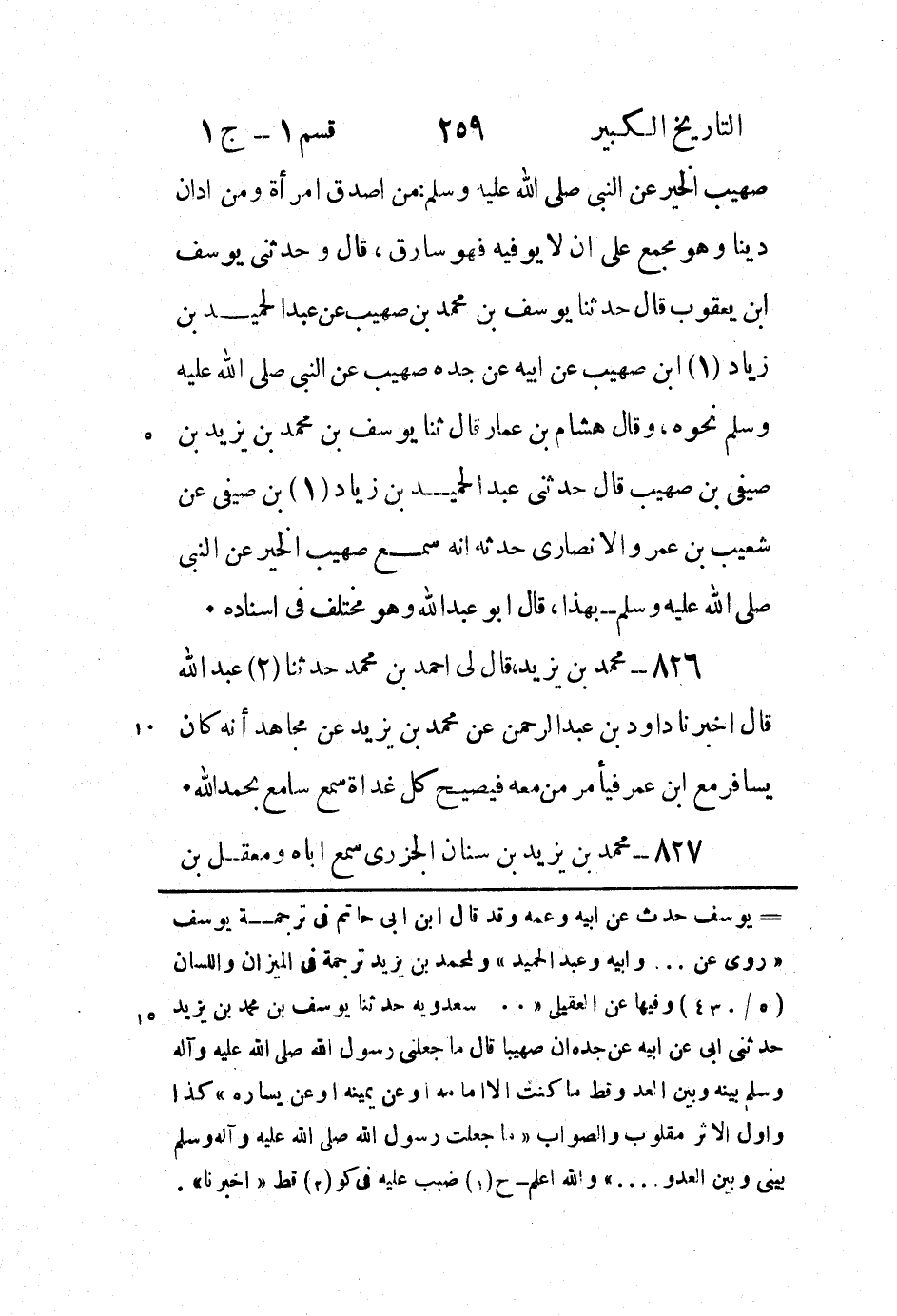 = يوسف حدث عن ابيه وعمه وقد قال ابن ابى حاتم في ترجمة يوسف " روى عن..وابيه وعبد الحميد " ولمحمد بن يزيد ترجمة في الميزان واللسان (5 / 430) وفيها عن العقيلى "..سعدويه حدثنا يوسف بن محمد بن يزيد حدثنى ابى عن ابيه عن جده ان صهيبا قال ما جعلني رسول الله صلى الله عليه وآله وسلم بينه وبين العدو قط ما كنت الا امامه أو عن يمينه أو عن يساره، كذا