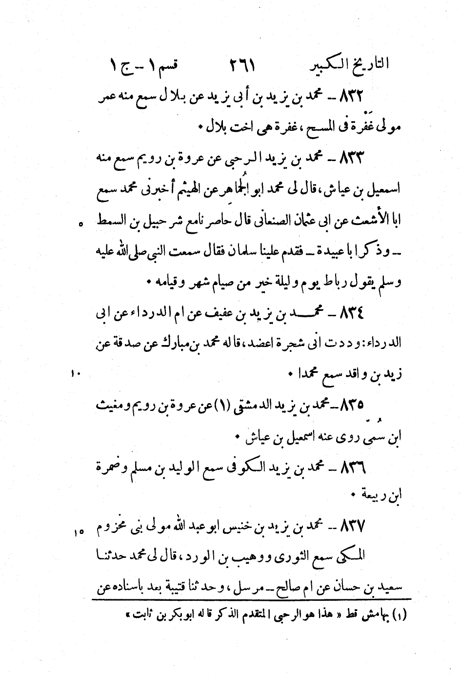 835 - مُحَمَّد بْن يزيد الدمشقي (1) عن عروة بن رويم ومغيث ابن سمى روى عنه اسمعيل بْن عياش.