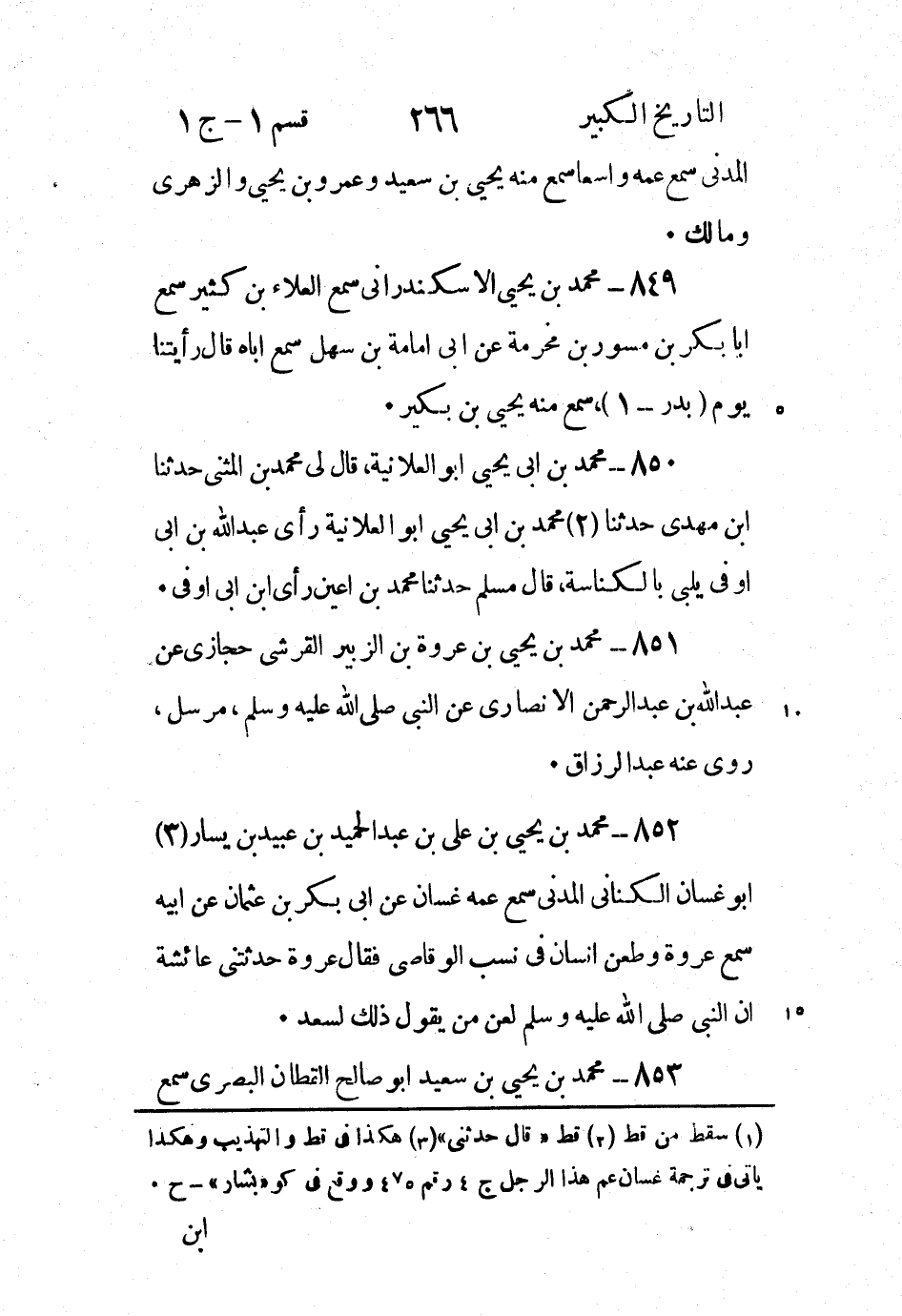 849 - مُحَمَّد بْن يحيى الإسكندراني سَمِعَ العلاء بْن كثير سَمِعَ أبا بكر بْن مسور بْن مخرمة عَنْ أَبِي إمامة بْن سهل سَمِعَ أباه قَالَ رأيتنا يوم (بدر - 1) ، سَمِعَ منه يحيى بْن بكير.