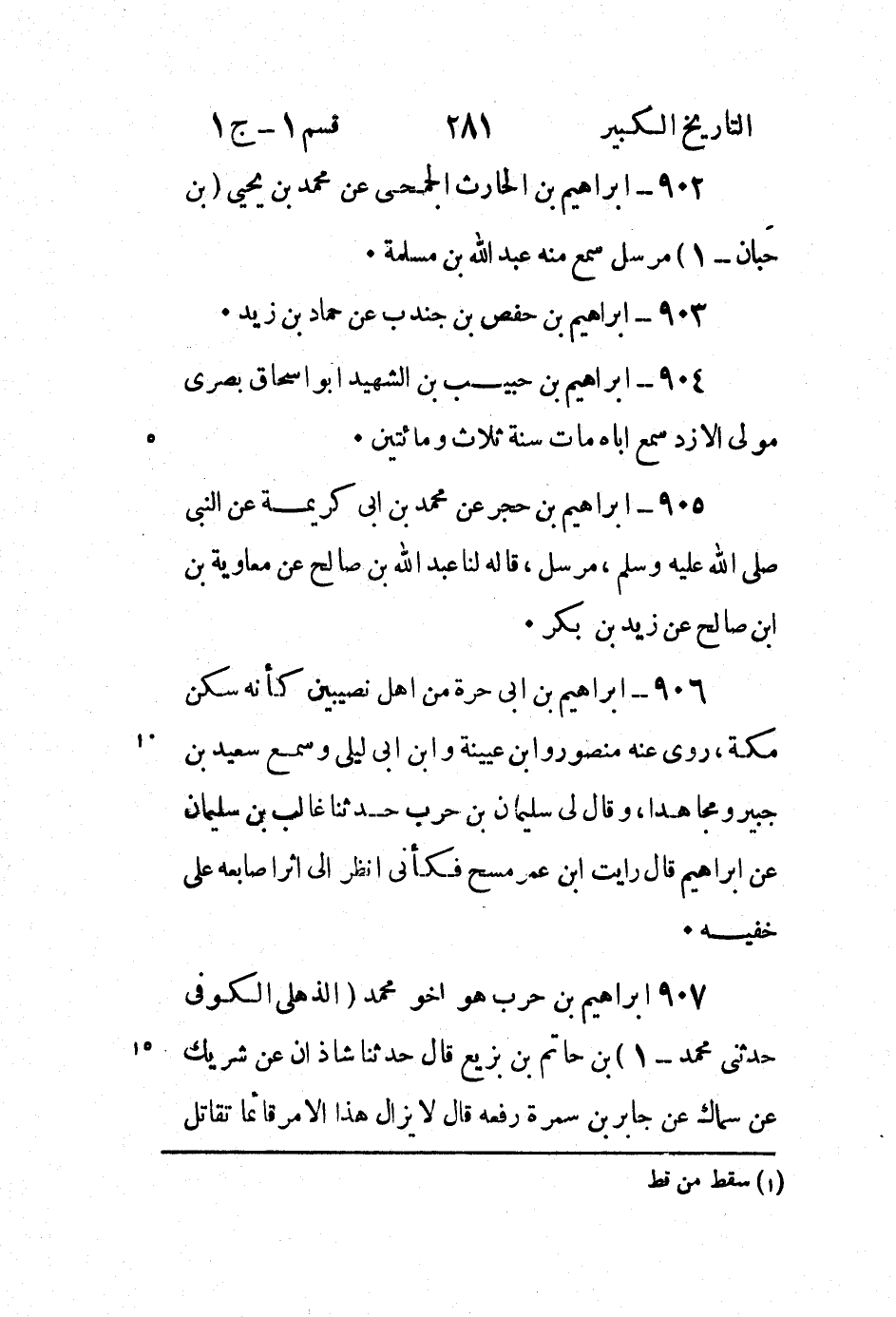 905 - إِبْرَاهِيم بْن حجر عَنْ مُحَمَّد بْن أَبِي كريمة عَنِ النَّبِيِّ