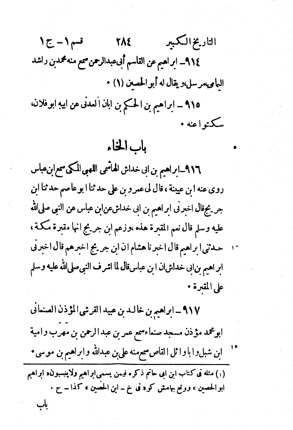 (1) مثله في كتاب ابن ابى حاتم فيمن يسمى ابراهيم ولا ينسبون " ابراهيم أبو الحصين " ووقع بهامش كو " في خ - ابن الحصين " كذا - ح.