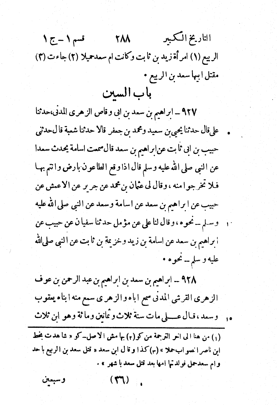 928 - إِبْرَاهِيم بْن سَعْد بْن إِبْرَاهِيم بْن عَبْد الرَّحْمَن بْن عَوْف الزُّهْرِيّ الْقُرَشِيّ الْمَدَنِيّ سَمِعَ أباه والزُّهْرِيّ سَمِعَ منه ابناه يعقوب وسعد، قَالَ علي مات سنة ثلاث وثمانين ومائة وهو ابن ثلاث