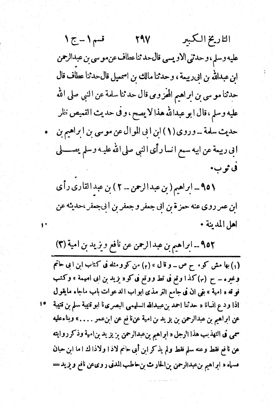 951 - إِبْرَاهِيم (بن عبد الرحمن - 2) بن عبد القارى رأى ابْن عُمَر روى عَنْهُ حمزة بْن أَبِي جَعْفَر وجَعْفَر بْن أَبِي جَعْفَر، حديثه عَنْ أهل المدينة.