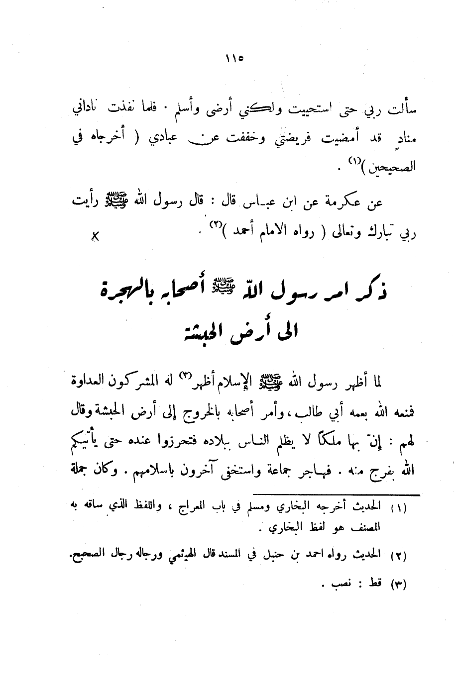 عن عكرمة عن ابن عباس قال قال رسول الله صلى الله عليه و سلم رأيت ربي تبارك وتعالى رواه الإمام أحمد ذكر أمر رسول الله صلى الله عليه و سلم أصحابه بالهجرة إلى أرض الحبشة