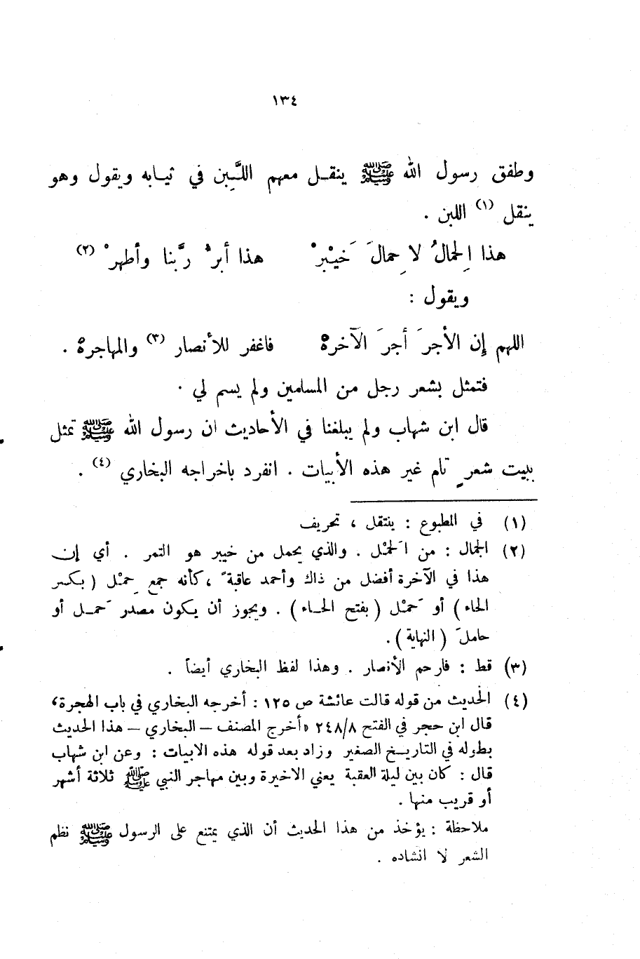 وطفق رسول الله صلى الله عليه و سلم ينقل معهم اللبن في ثيابه ويقول وهو ينقل اللبن
