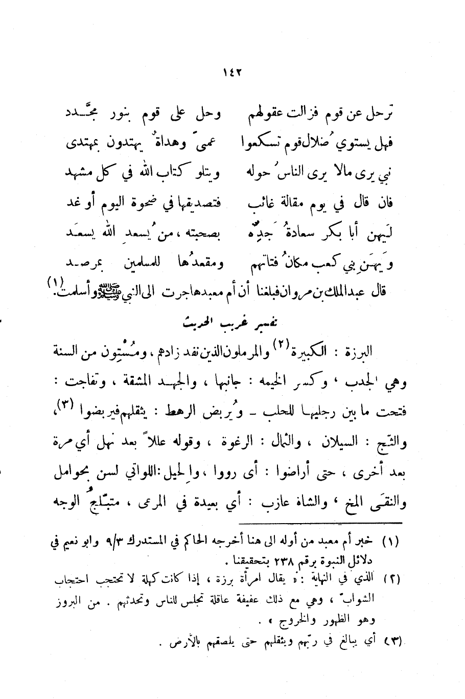 قال عبد الملك بن مروان فبلغنا أن أم معبد هاجرت إلى النبي صلى الله عليه و سلم وأسلمت
