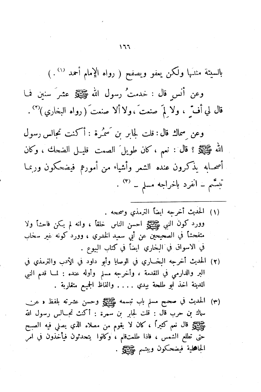 وعن أنس قال خدمت رسول الله صلى الله عليه و سلم عشر سنين فما قال لي أف ولا لم صنعت ولا ألا صنعت رواه البخاري