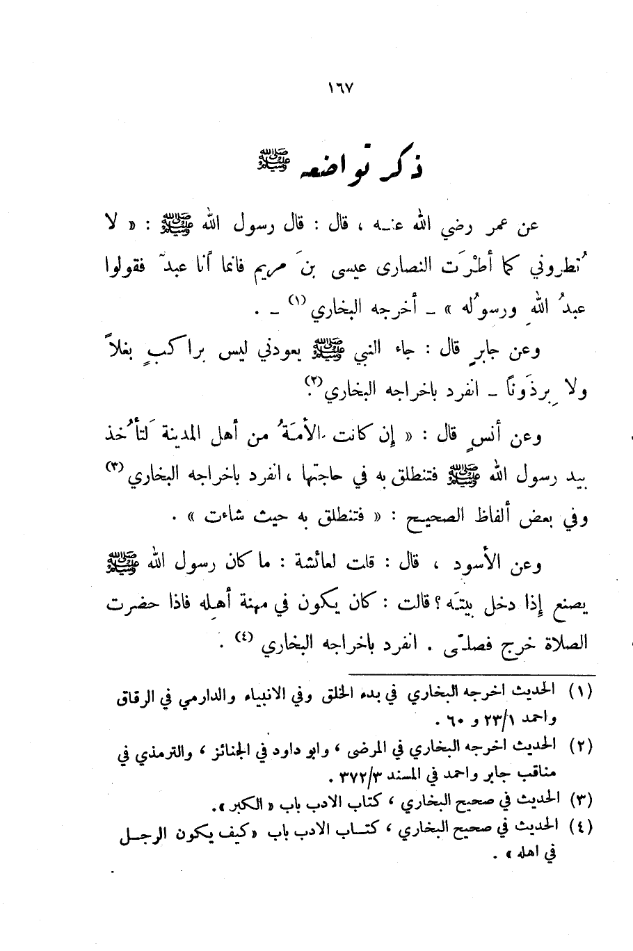 عن عمر رضي الله عنه قال قال رسول الله صلى الله عليه و سلم لا تطروني كما أطرت النصارى عيسى بن مريم فانما أنا عبد فقولوا عبد الله ورسوله أخرجه البخاري
