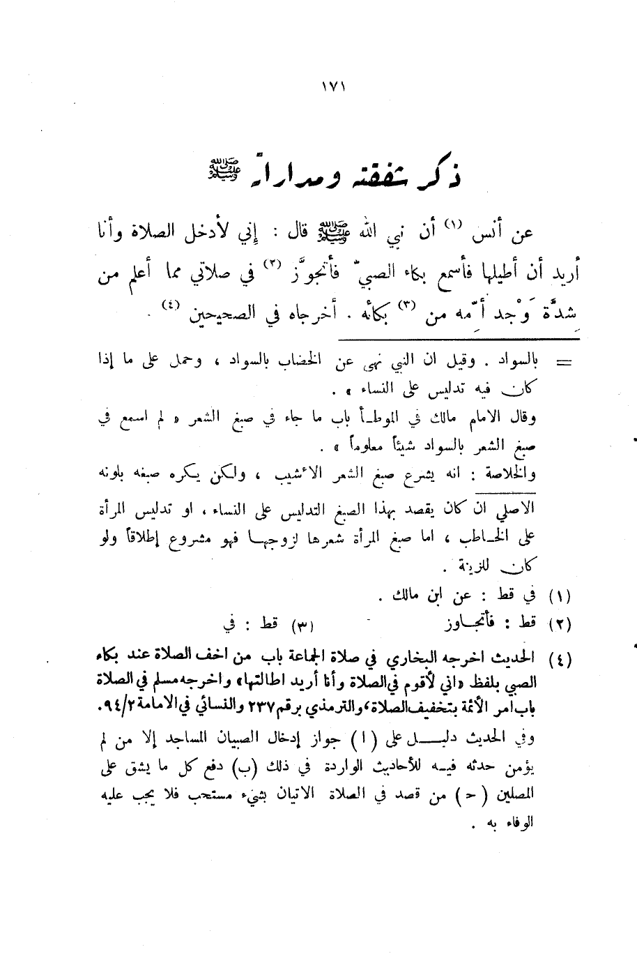 عن أنس أن نبي الله صلى الله عليه و سلم قال إني لأدخل الصلاة وأنا أريد أن أطيلها فأسمع بكاء الصبي فأتجوز في صلاتي مما أعلم من شدة وجد أمه من بكائه أخرجاه في الصحيحين