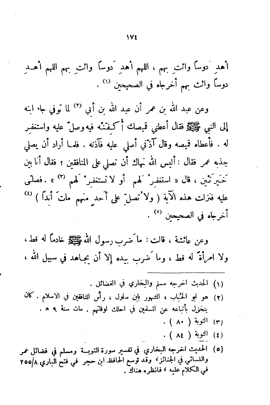 وعن عبد الله بن عمر أن عبد الله بن أبي لما توفي جاء ابنه إلى النبي صلى الله عليه و سلم فقال أعطني قميصك أكفنه فيه وصل عليه واستغفر له فأعطاه قميصه وقال آذني أصلي عليه فآذنه فلما أراد أن يصلي جذبه عمر فقال أليس الله نهاك أن تصلي على المنافقين فقال أنا بين خيرتين قال استغفر لهم أو لا تستغفر لهم فصلى عليه فنزلت هذه الآية ولا تصل على أحد منهم مات أبدا أخرجاه في الصحيحين