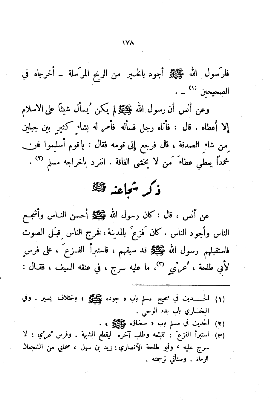 وعن أنس أن رسول الله صلى الله عليه و سلم لم يكن يسأل شيئا على الإسلام إلا أعطاه قال فأتاه رجل فسأله فأمر له بشاء كثير بين جبلين من شاء الصدقة قال فرجع إلى قومه فقال يا قوم أسلموا فإن محمدا يعطي عطاء من لا يخشى الفاقة انفرد بإخراجه مسلم