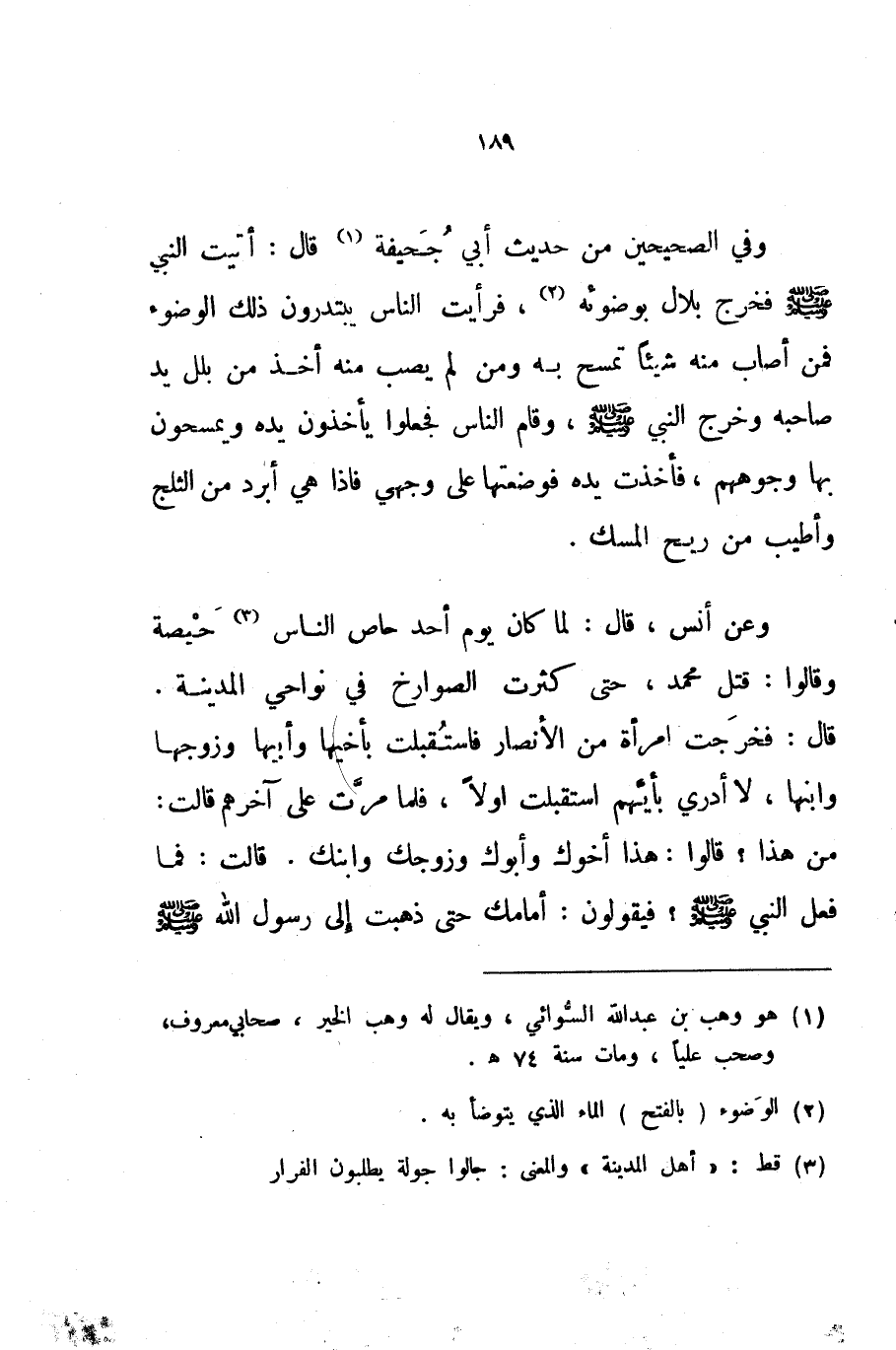 وفي الصحيحين من حديث أبي جحيفة قال أتيت النبي صلى الله عليه و سلم فخرج بلال بوضوئه فرأيت الناس يبتدرون ذلك الوضوء فمن أصاب منه شيئا تمسح به ومن لم يصب منه أخذ من بلل يد صاحبه وخرج النبي صلى الله عليه و سلم وقام الناس فجعلوا يأخذون يده ويمسحون بها وجوههم فأخذت يده فوضعتها على وجهي فإذا هي أبرد من الثلج وأطيب من ريح المسك