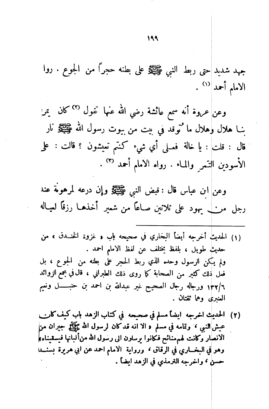 جهد شديد حتى ربط النبي صلى الله عليه و سلم على بطنه حجرا من الجوع رواه الإمام أحمد