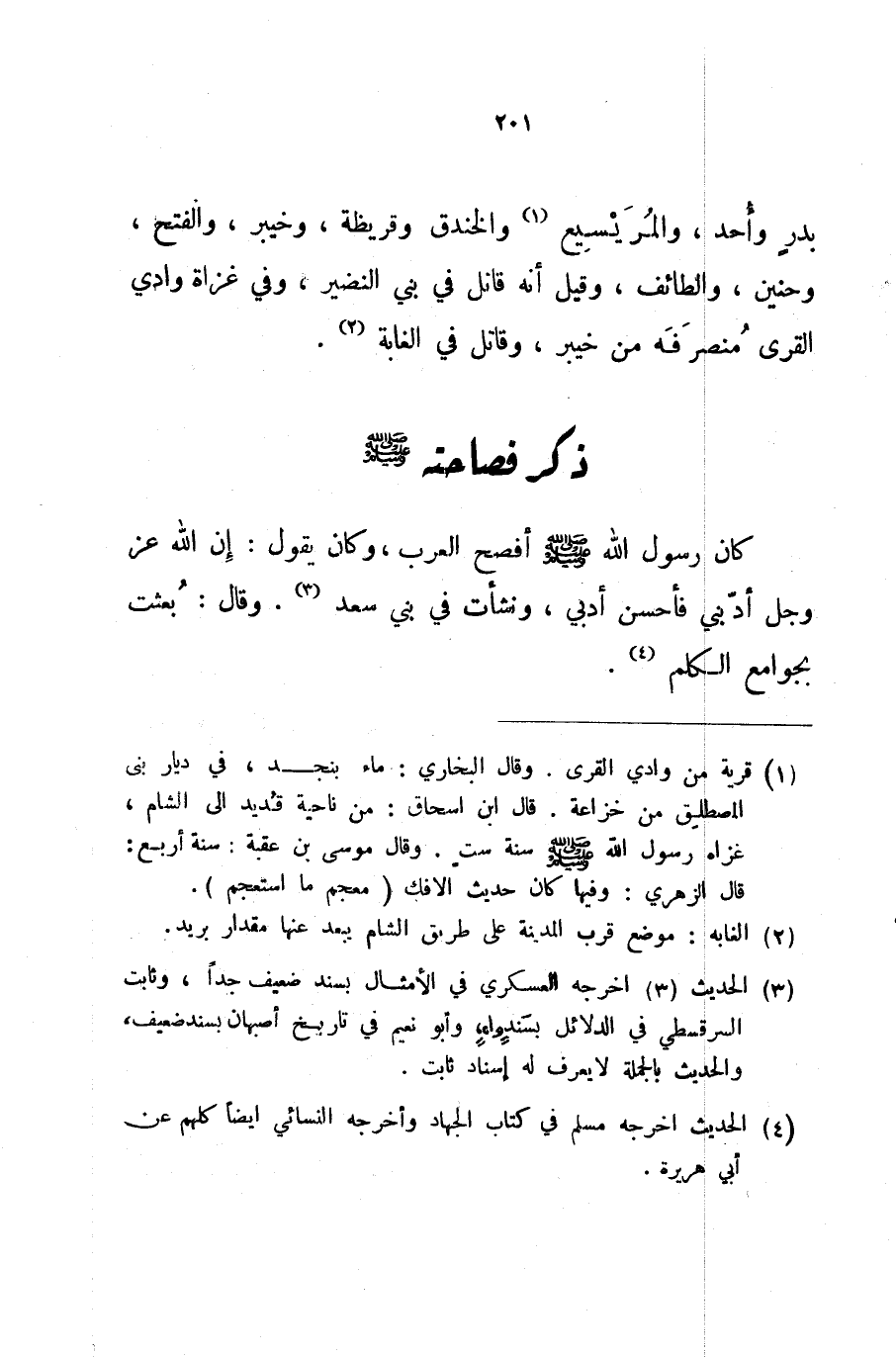 كان رسول الله صلى الله عليه و سلم أفصح العرب وكان يقول إن الله عز و جل أدبني فأحسن أدبي ونشأت في بني سعد وقال بعثت بجوامع الكلم